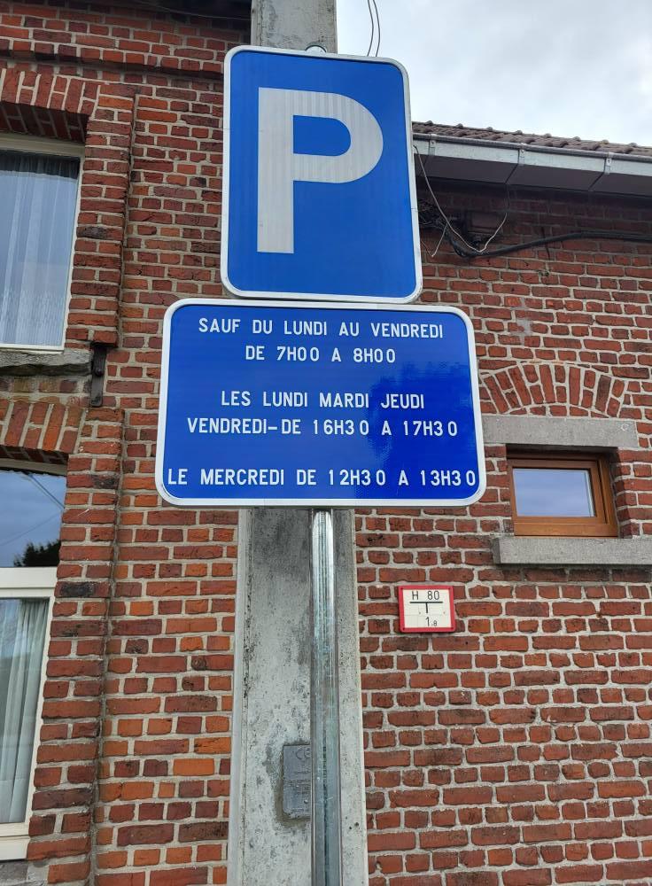 À certains moments de la journée, le stationnement est temporairement interdit sur une zone spécifique de la place. Ces restrictions correspondent aux horaires de desserte des bus, tels qu’indiqués par la signalisation installée sur place. Cette mesure est nécessaire car l’arrêt de Thimougies constitue un terminus : les bus doivent disposer de l’espace suffisant pour effectuer leur manœuvre de demi-tour en toute sécurité.