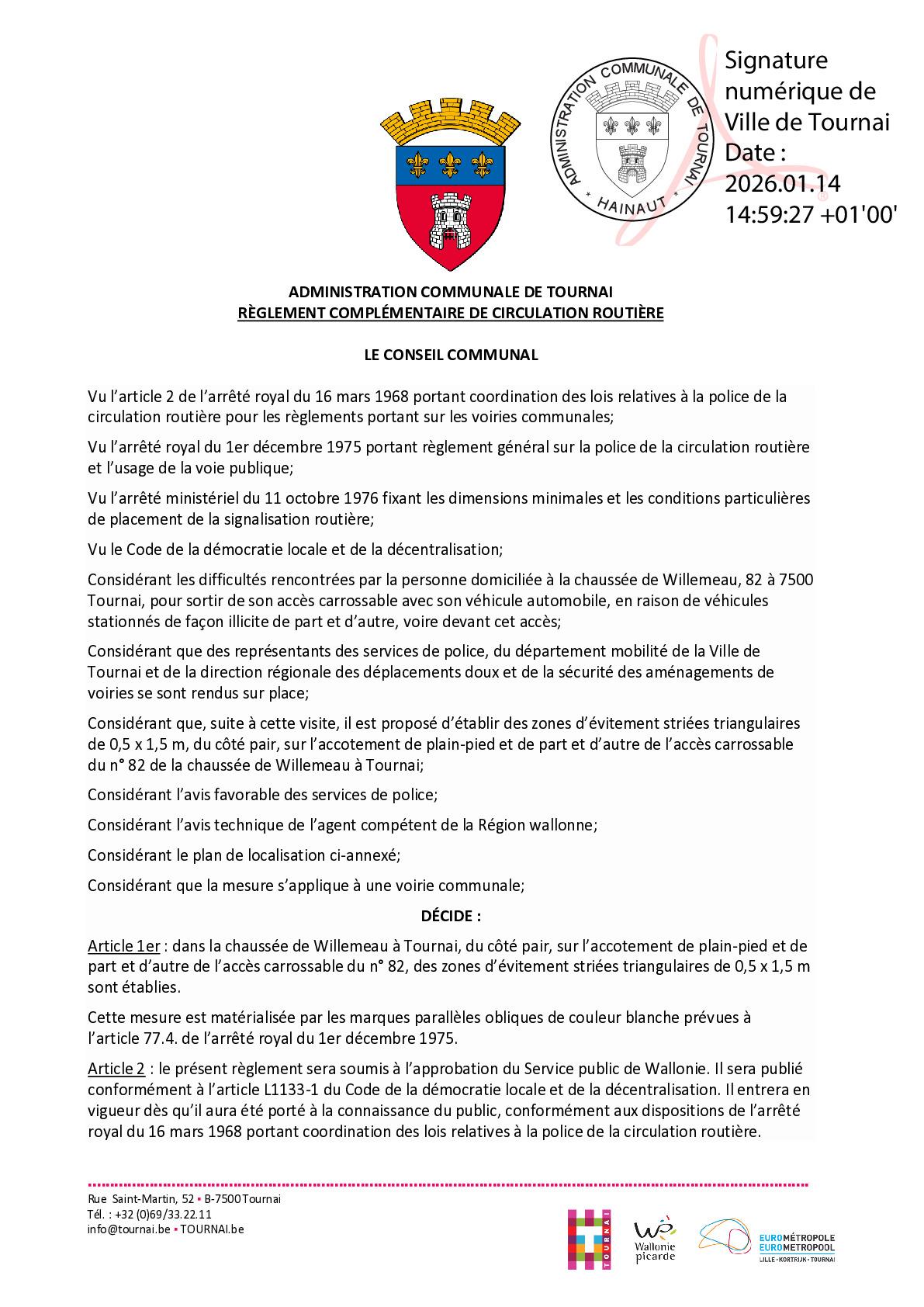 Tournai chaussée de Willemeau 82 - Zone d'évitement striée Télécharger Taille: 476.16 Ko Extension: pdf