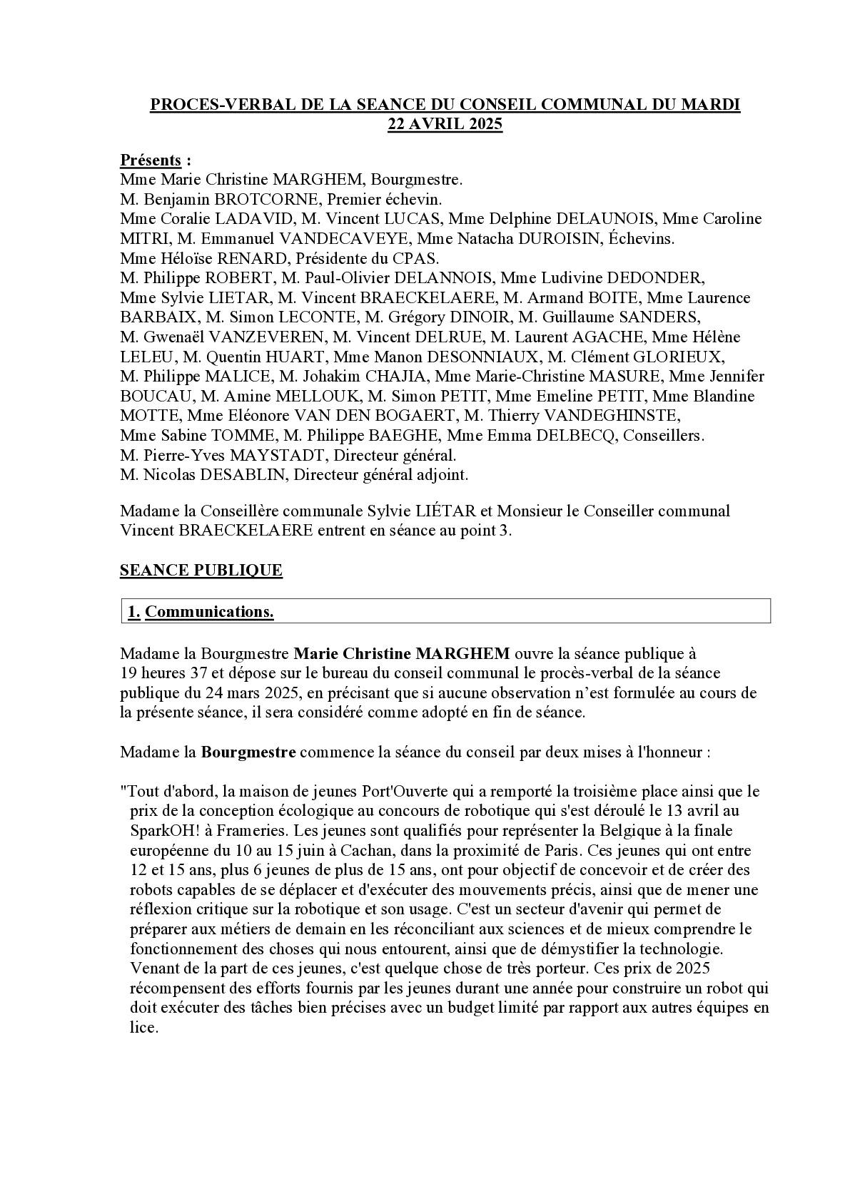 Le Conseil communal es accessible au public. La séance du Conseil communal débute à 19 h 30. Le Conseil communal se tient en deux temps, une séance publique et une séance secrète à huis clos. La séance publique sera aussi retransmise en vidéo sur notre site internet à partir de 19 h 30.