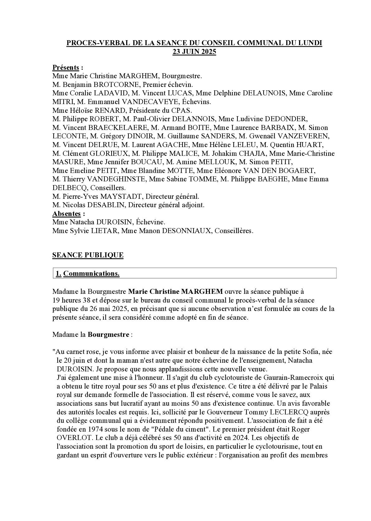 - Finances communales. Vérification de l’encaisse communale au 31 mars 2025. Information.