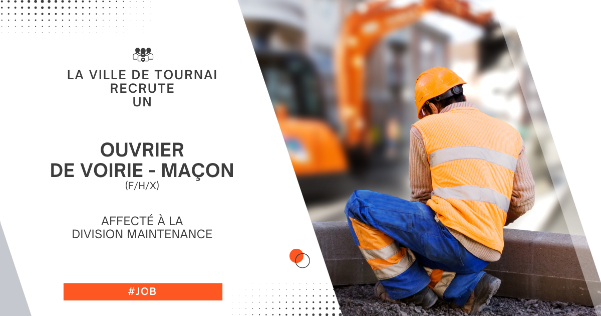 La Ville de Tournai recrute un ouvrier de voirie - maçon (F/H/X) affecté à la Division maintenance.