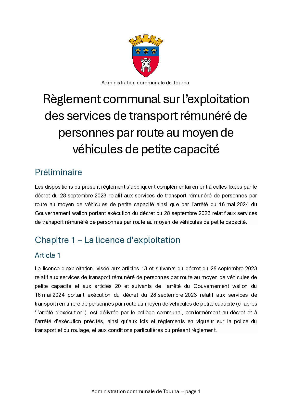 Le Conseil communal du 24 mars 2025 a décidé d'adopter un nouveau règlement communal sur l’exploitation des services de transport rémunéré de personnes par route au moyen de véhicules de petite capacité afin de se conformer à la réforme du secteur des taxis votée par le Parlement wallon entrée en vigueur le 1er décembre 2024.