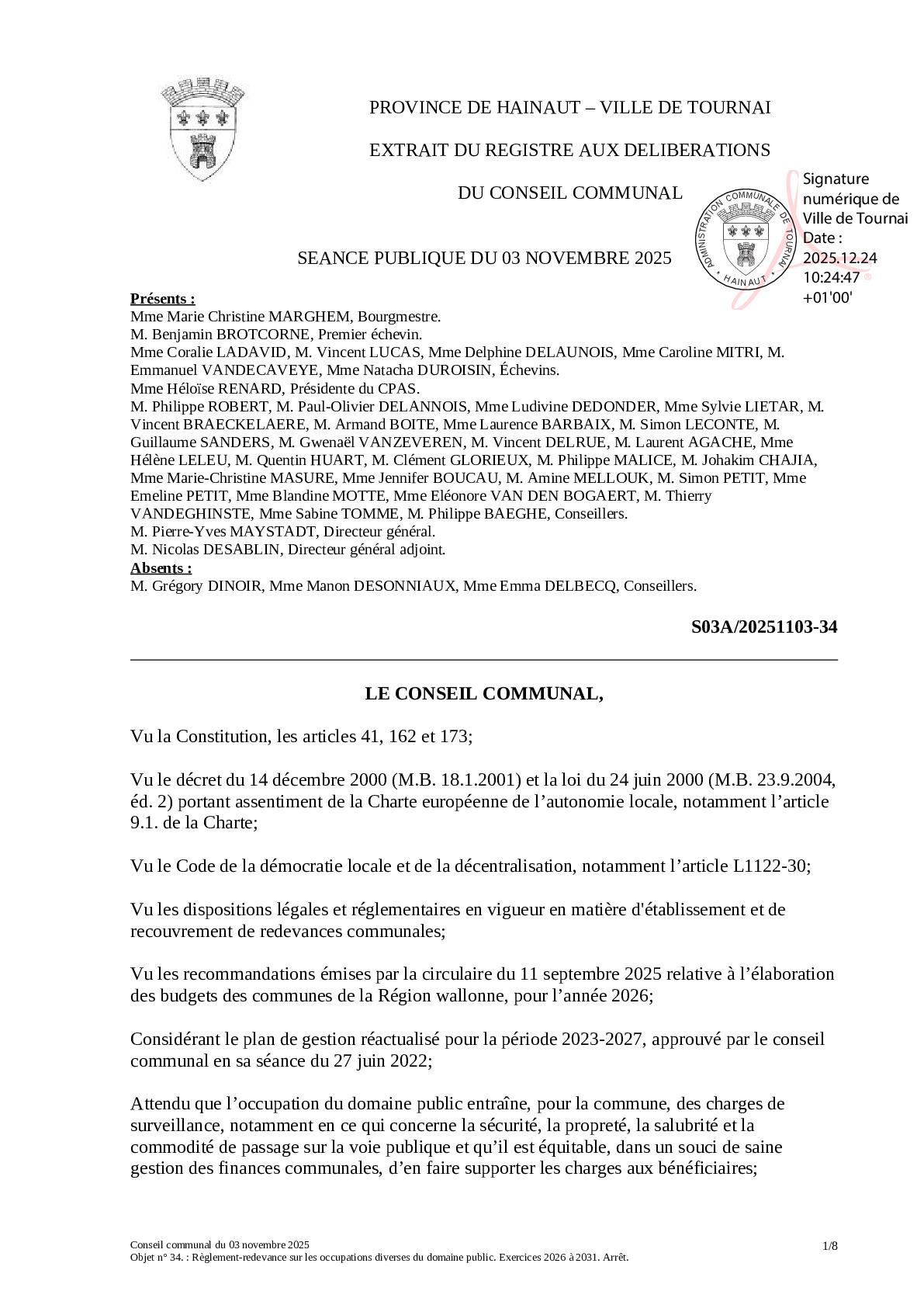 Le conseil communal du 3 novembre 2025 a arrêté les termes du règlement-redevance sur les occupations diverses du domaine public.
