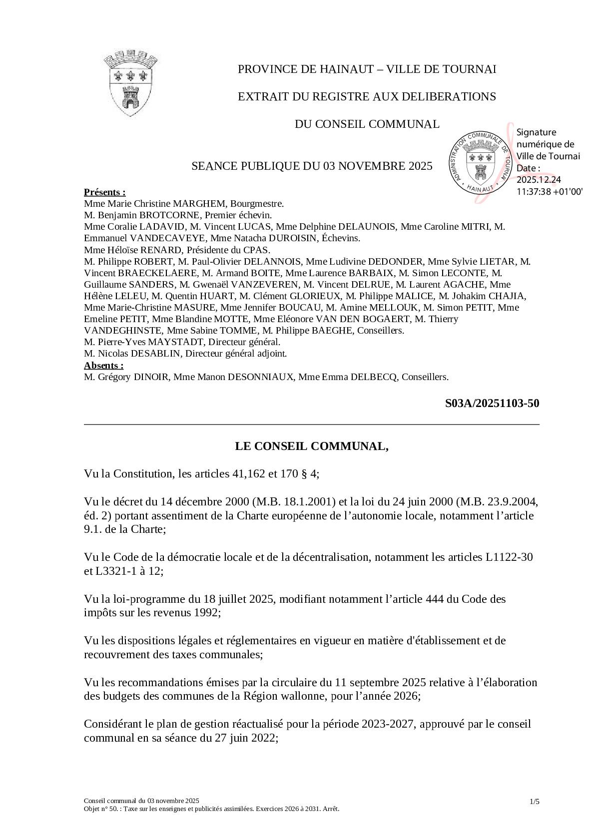 Le conseil communal du 3 novembre 2025 a arrêté les termes de la taxe sur les enseignes et publicités assimilées.