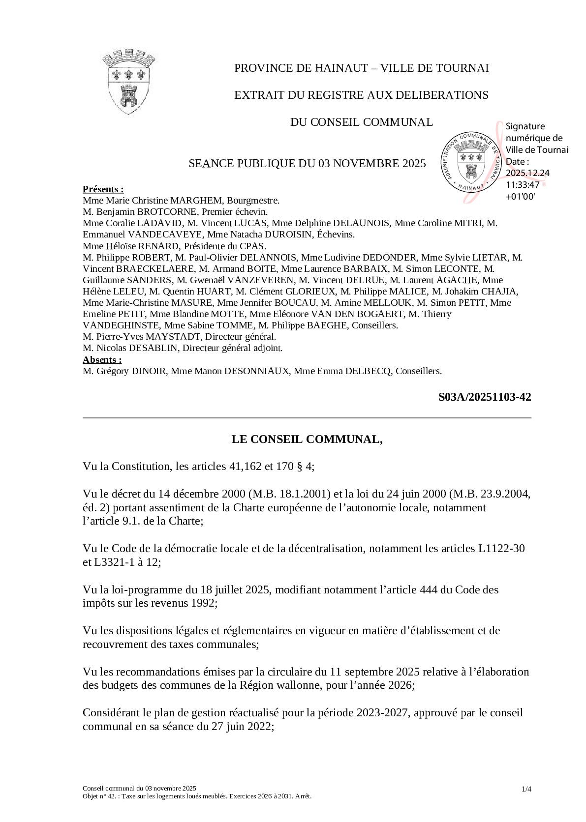 Le conseil communal du 3 novembre 2025 a arrêté les termes de la taxe sur les logements loués meublés.
