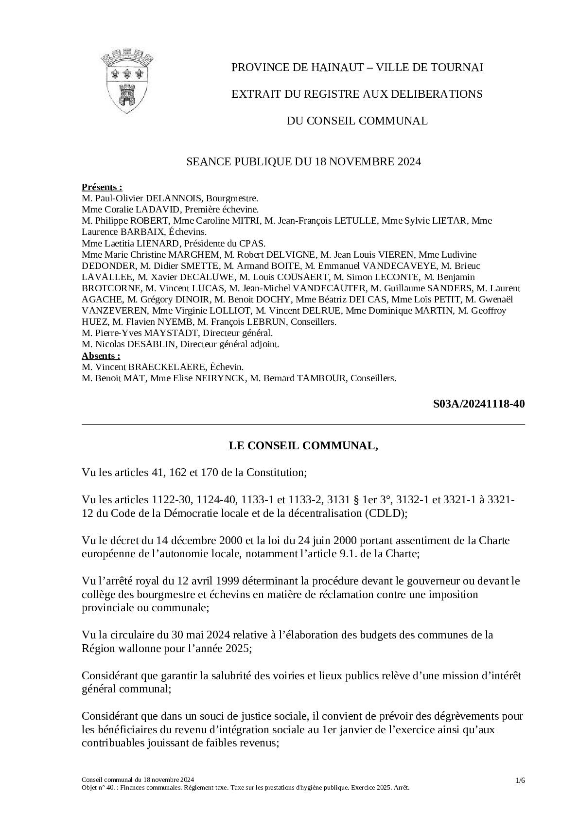 Le Conseil communal du 18 novembre 2024 a arrêté la taxe sur les prestations d’hygiène publique.