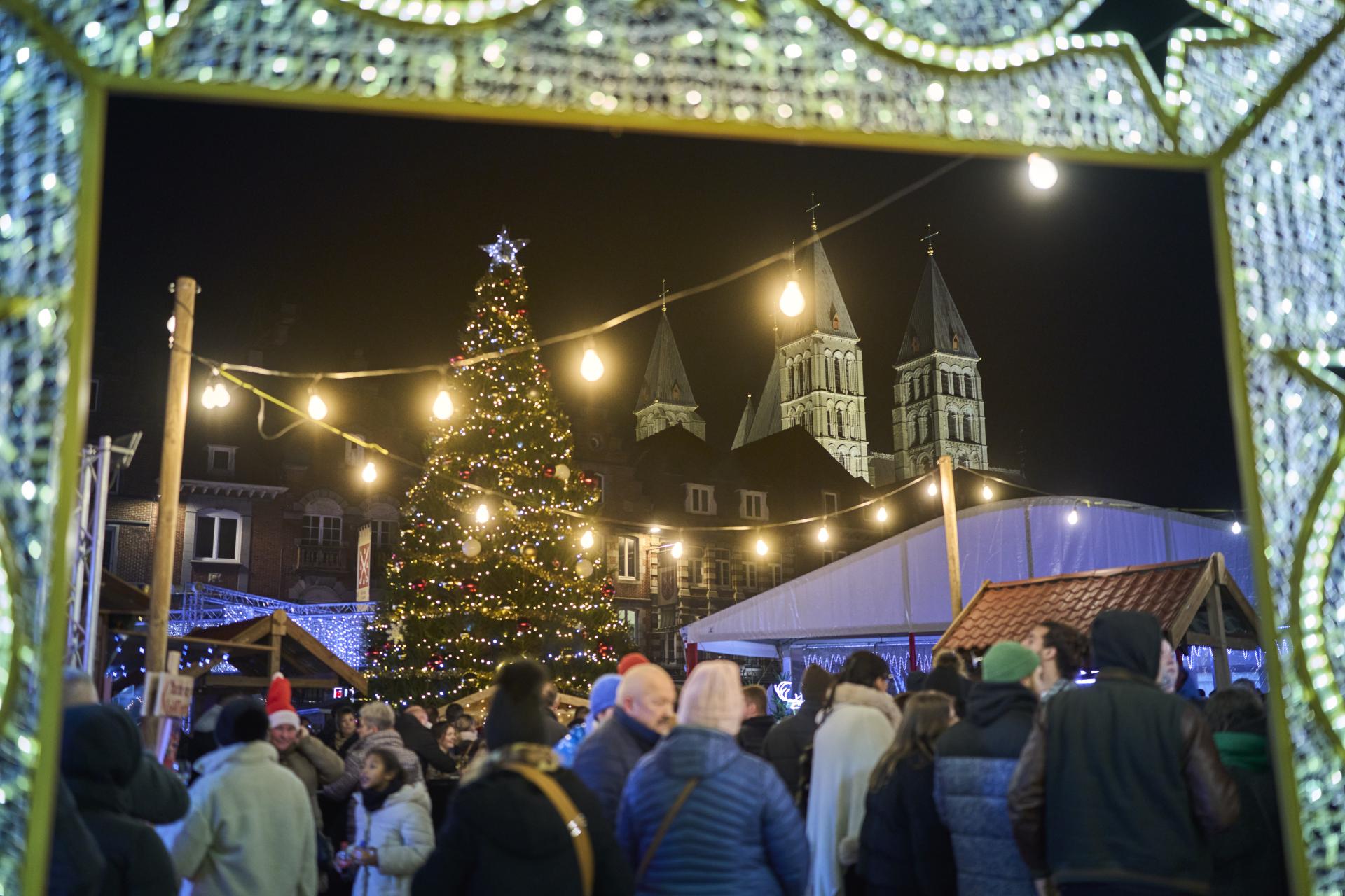 Sur la Grand-Place, Tournai se transforme en un véritable décor enchanté où lumières, gourmandises et animations créent l’ambiance chaleureuse des fêtes.